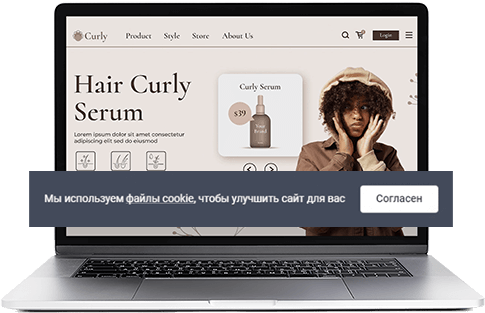 После установки модуля на сайте выводится окно с информацией об использовании cookies.